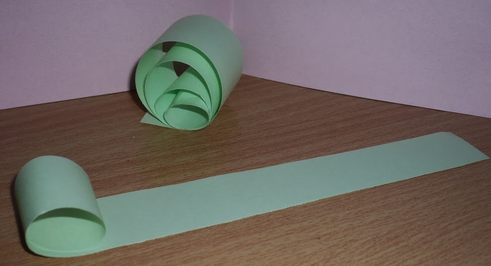 Avec une bande tu vas faire le corps, une spirale pour la tête, et juste un petit coup de ciseaux pour arrondir et affiner la queue de ton escargot.