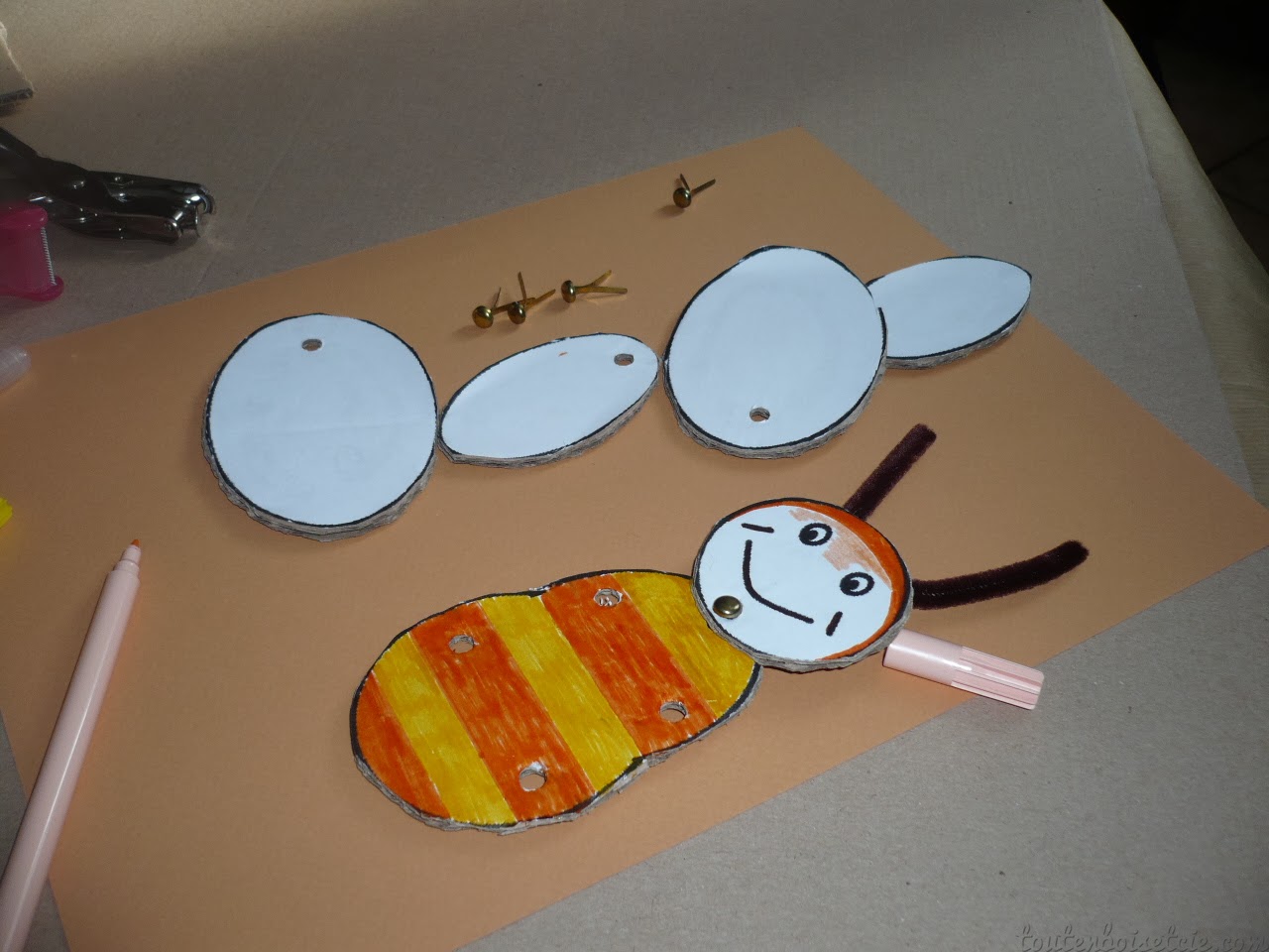 Et voilà tu as réalisé le pantin articulé d’Ernestine petite abeille.