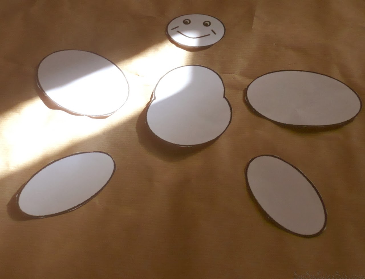 Tu colles les 6 morceaux composant son corps sur la feuille de carton,