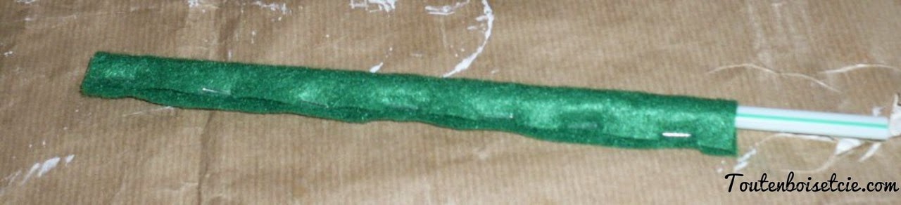 Découpe une bande de feutrine verte, places-y la paille et demande à un adulte d’agrafer la feutrine autour de la paille si tu es encore trop petit pour son utilisation.