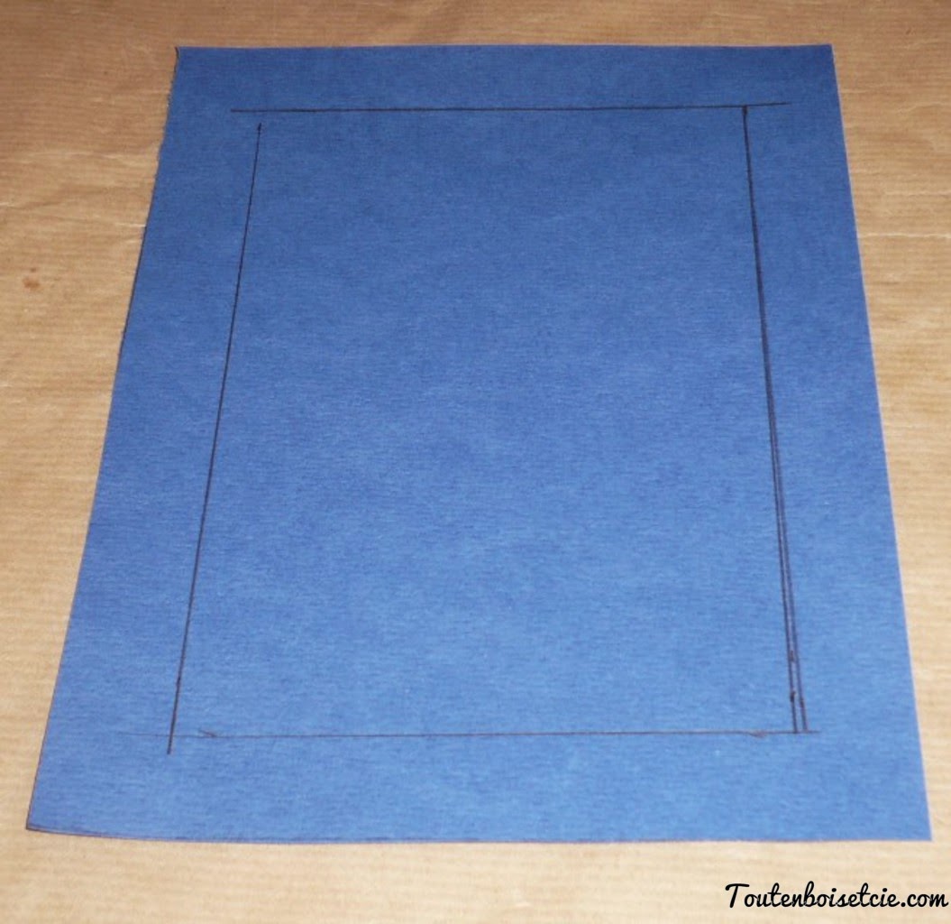 Trace sur la feuille de couleur bleue, un cadre de 2 cm et découpe